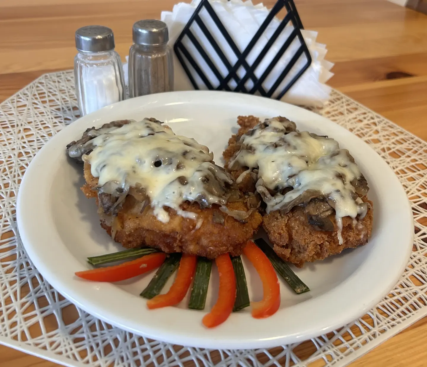 - Schab a’la pizza z ziemniakami lub ziemniakami opiekanymi i surówką