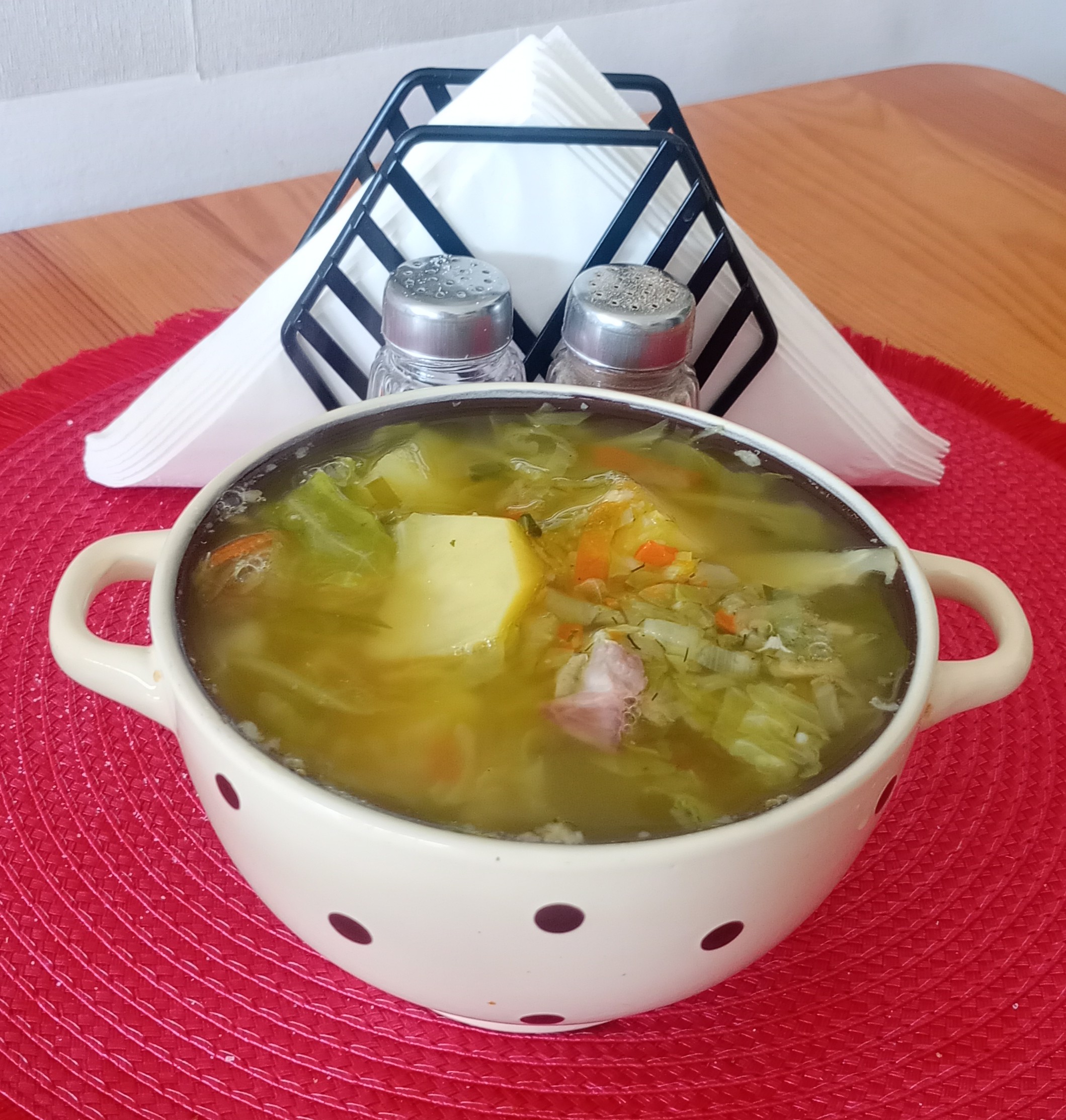 - Kapuśniak z młodej kapusty z ziemniakami (wersja wegetariańska)